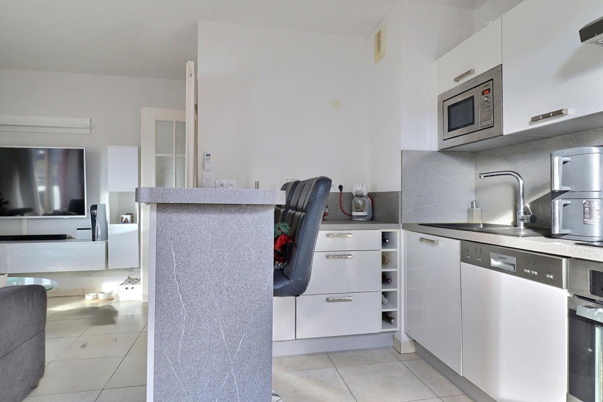 d’un côté, un lumineux séjour avec cuisine ouverte entièrement équipée,