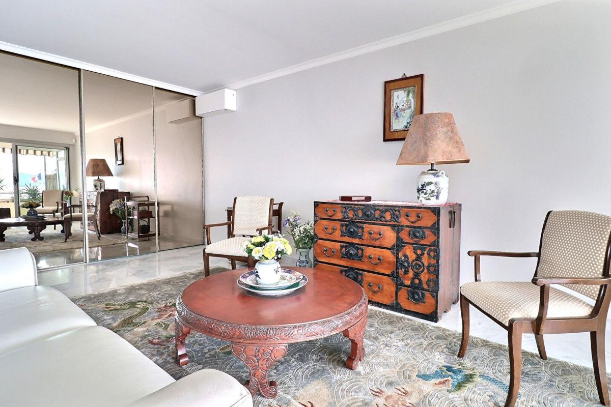 Triangle d’or – Appt traversant rénové par architecte offrant une superbe vue mer, toutes commodités à pied. Le séjour exposé S-O ouvre sur une agréable terrasse face mer. La salle à manger , la cuisine et la chambre donne sur une terrasse et jardin, ce qui permet de profiter à tout moment des espaces extérieurs. Une salle d’eau avec WC. Nombreux rangements. Possibilité d »aménager facilement une deuxième chambre et un 2e WC. La cave et la place de parking en sous-sol sont accessibles directement par ascenseur. Ce bien immobilier coup de coeur offre un environnement très agréable et proche de tout, au sein d’une résidence très prisée. Aucun travaux à prévoir.