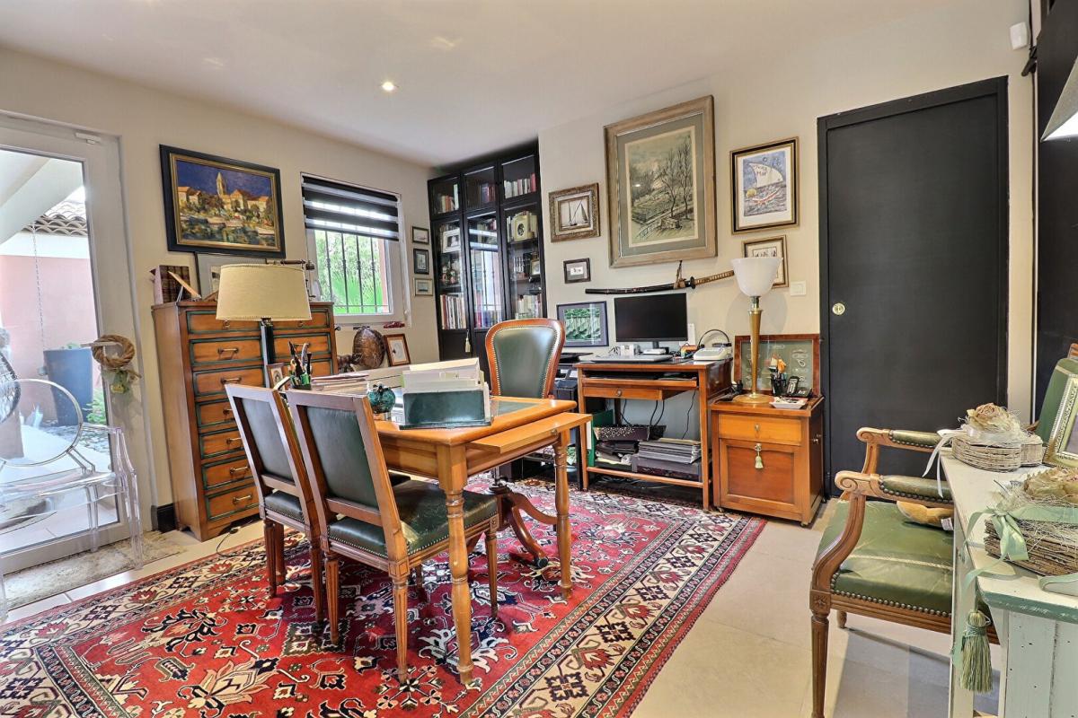 The garden, which is not overlooked and easy to maintain, features a swimming pool secured by a cover and infrared alarm, a barbecue area, and several relaxation areas to fully enjoy sunny days. Several outdoor parking spaces are also available.